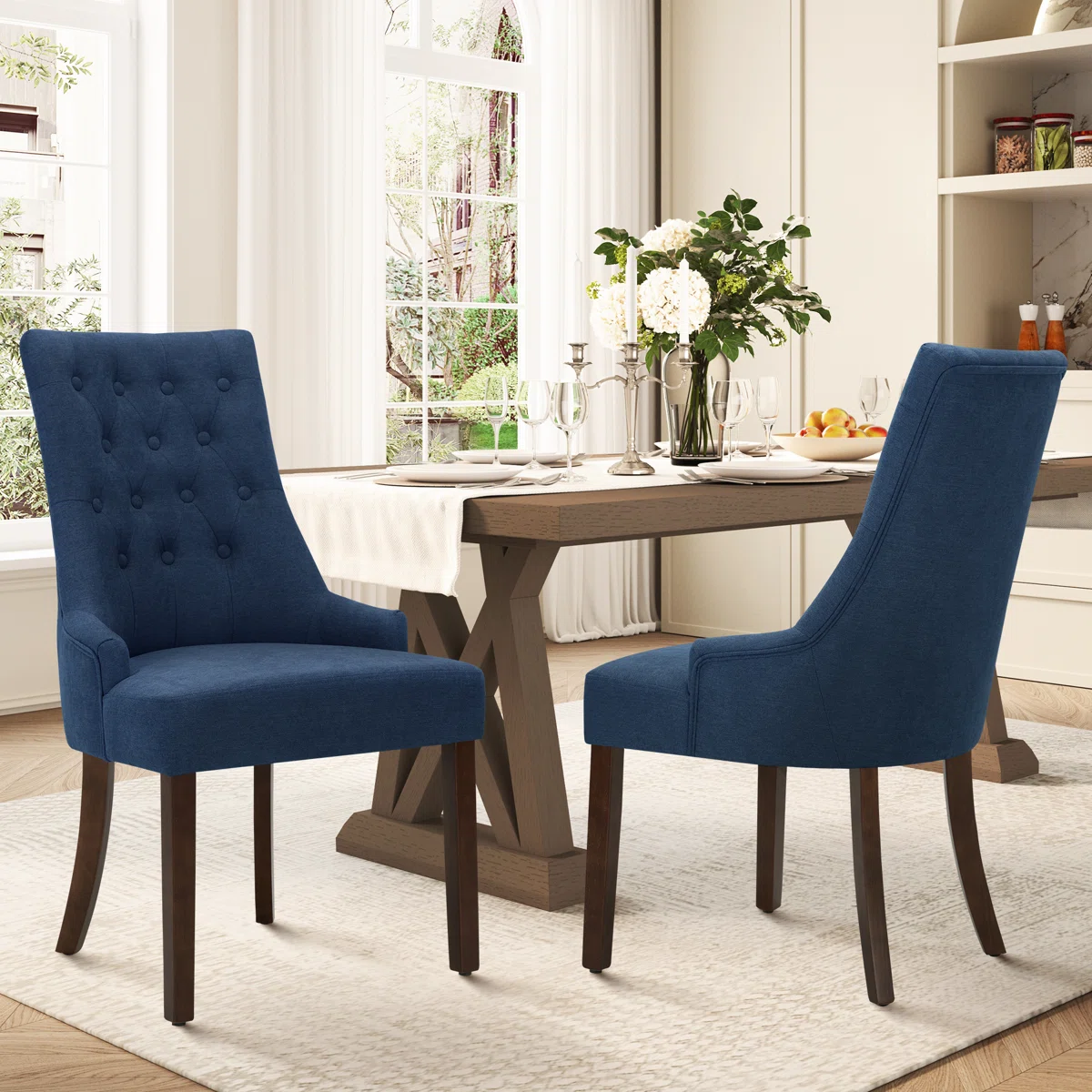 Elevate your dining experience with the Aalbert Tufted Wing Back Parsons Dining Chairs. This 2-piece set combines classic elegance with modern comfort. The solid wood frame and legs are paired with linen-textured upholstery, while the foam-filled seats ensure lasting comfort. The tufted back adds a refined touch, making these chairs a stylish addition to any dining room.