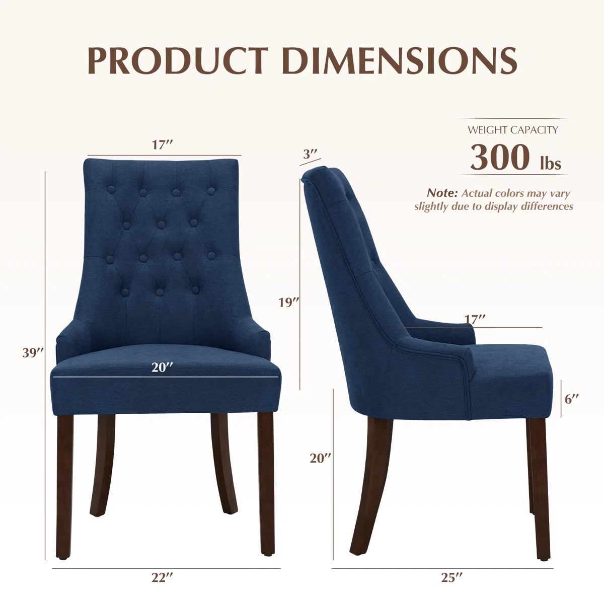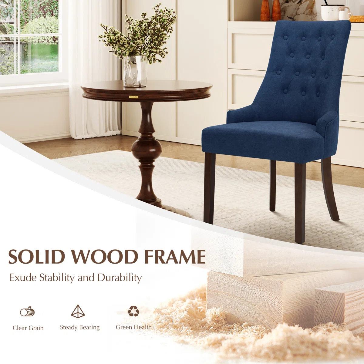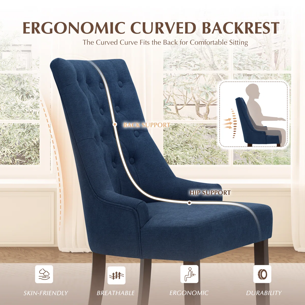 Aalbert Tufted Wing Back Parsons Dining Chair – Upholstered Side Chair Set of 2, Linen Fabric, Solid Wood Frame