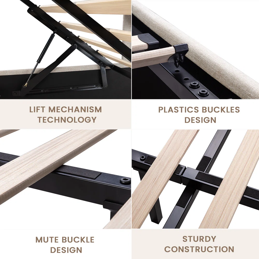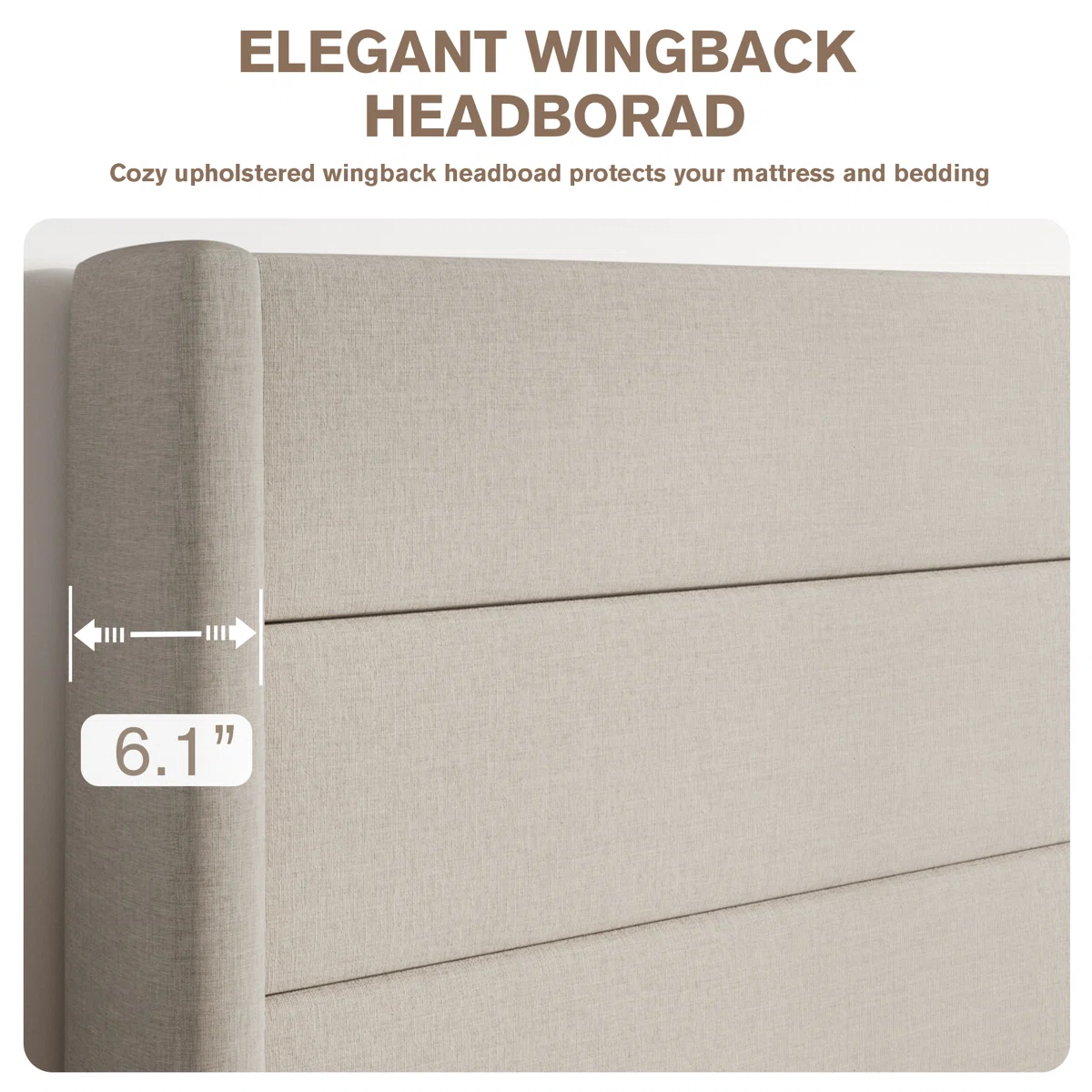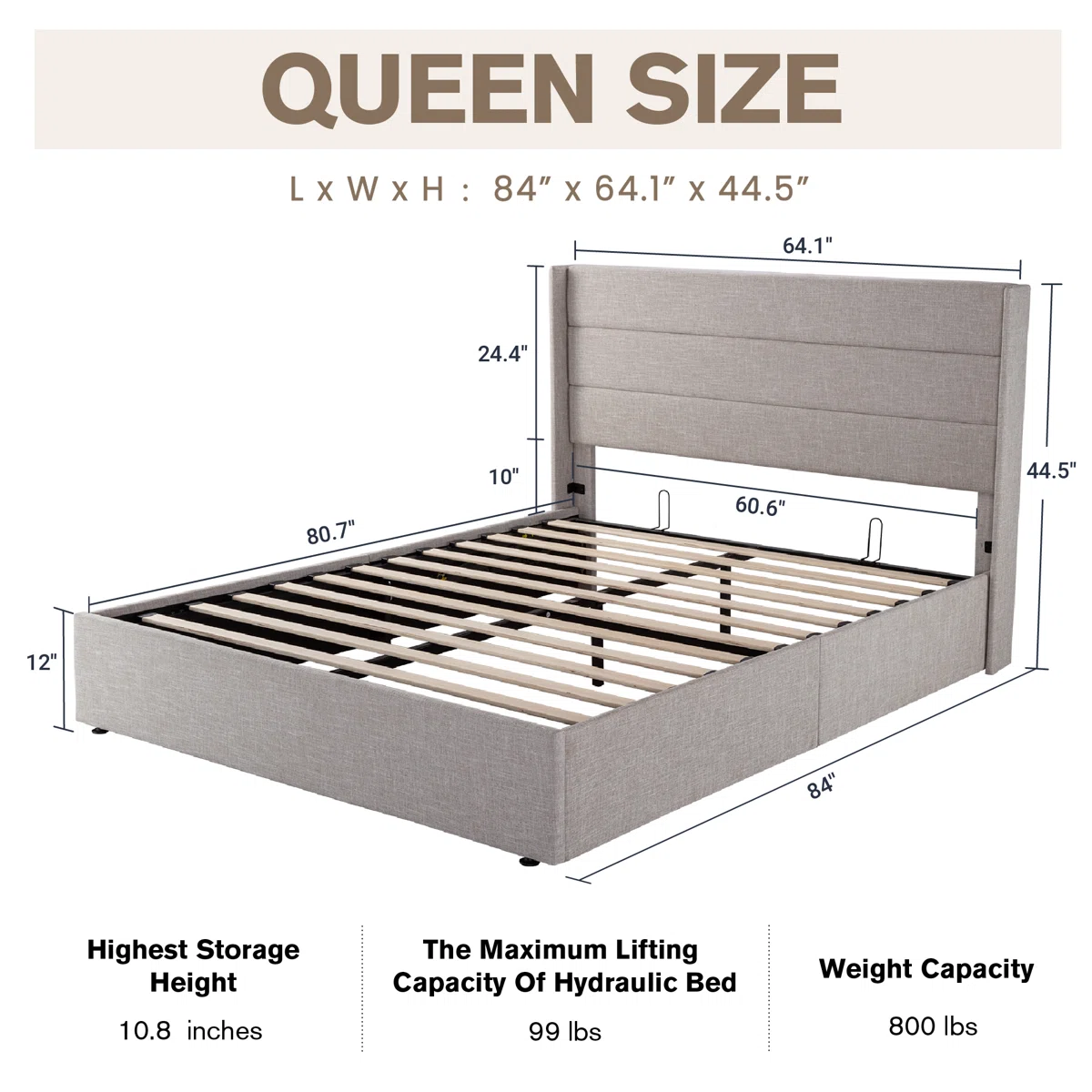 Modern Hydraulic Lift Storage Bed – Upholstered Platform Bed with Wingback Headboard